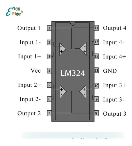 El LM324 es un circuito integrado que contiene cuatro amplificadores operacionales independientes en un solo encapsulado, diseñados específicamente para operar con una sola fuente de alimentación de voltaje amplio (de 3 V a 32 V). Este amplificador operacional es ampliamente utilizado en aplicaciones analógicas como filtros activos, amplificadores de señal, comparadores, osciladores y sensores. Gracias a su bajo consumo de corriente, alta ganancia y estabilidad, el LM324 es ideal para sistemas alimentados por baterías o de bajo consumo energético. Además, su capacidad de funcionamiento con señales que se acercan al nivel de tierra lo hace muy versátil en diseños donde se requiere aprovechar todo el rango de voltaje disponible.