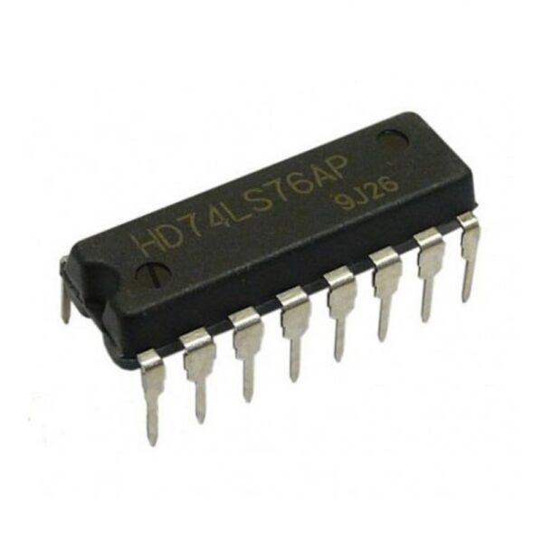 El Circuito Integrado 74LS76 es un dispositivo lógico de la familia TTL que contiene dos flip-flops JK con entradas de reloj, preset (ajuste) y clear (borrado) independientes. Estos flip-flops están diseñados para cambiar de estado en el flanco negativo del pulso de reloj, permitiendo el almacenamiento y conmutación precisa de datos en sistemas digitales. Gracias a su versatilidad, pueden utilizarse en aplicaciones como contadores binarios, divisores de frecuencia y registros. Fabricado con tecnología Schottky de baja potencia, el 74LS76 opera con una tensión estándar de 5 V, ofreciendo alta velocidad de respuesta y eficiencia energética. Su encapsulado DIP de 16 pines lo hace ideal para uso en protoboards, circuitos impresos y proyectos educativos o industriales donde se requiera control secuencial confiable.