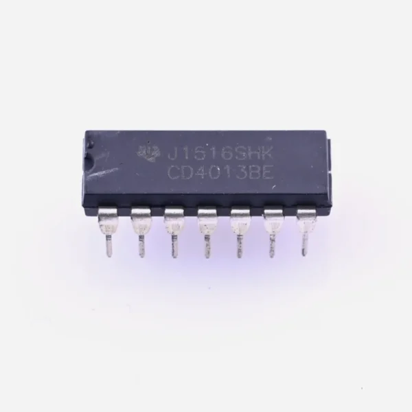 El Circuito Integrado CD4013 es un flip-flop tipo D dual de la familia CMOS, que contiene dos flip-flops independientes con entradas de reloj (clock), set, reset y datos, y salidas Q y Q̅ complementarias. Cada flip-flop puede almacenar un bit de información, conmutando su estado en el flanco positivo del reloj, lo que lo hace ideal para funciones de almacenamiento, temporización, división de frecuencia y control secuencial. Opera en un amplio rango de voltaje (de 3 V a 15 V), ofreciendo alta inmunidad al ruido y bajo consumo de energía, características propias de la tecnología CMOS. Su encapsulado DIP de 14 pines facilita su uso en protoboards y placas de circuito impreso, siendo ampliamente utilizado en aplicaciones electrónicas tanto industriales como educativas.