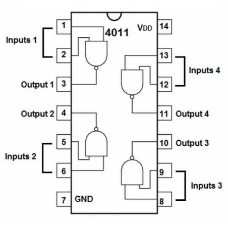El Circuito Integrado CD4011 es un componente de la familia CMOS que contiene cuatro compuertas NAND de dos entradas cada una, integradas en un encapsulado DIP de 14 pines. Estas compuertas lógicas permiten realizar operaciones fundamentales en electrónica digital, ya que la compuerta NAND es una de las bases para construir cualquier otra función lógica. El CD4011 opera con un amplio rango de voltaje (de 3 V a 15 V), lo que le proporciona gran versatilidad frente a sus equivalentes TTL. Además, su bajo consumo de energía y alta inmunidad al ruido lo hacen ideal para aplicaciones en sistemas embebidos, automatización, dispositivos de bajo consumo y proyectos educativos. Su diseño robusto y confiable facilita su uso tanto en prototipos como en productos electrónicos terminados.