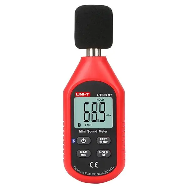 El Medidor Mini de Nivel de Sonido UNI-T UT-353BT es un dispositivo portátil diseñado para medir con precisión la intensidad del sonido en el rango de 30 a 130 dB. Cuenta con conectividad Bluetooth, lo que permite transmitir y registrar datos en tiempo real mediante una aplicación móvil, facilitando el análisis y monitoreo del entorno. Su pantalla LCD clara y su tamaño compacto lo hacen fácil de usar y transportar, siendo ideal para aplicaciones en control de ruido ambiental, estudios acústicos, oficinas, fábricas, auditorios y entornos domésticos donde se requiera un control confiable de los niveles sonoros.