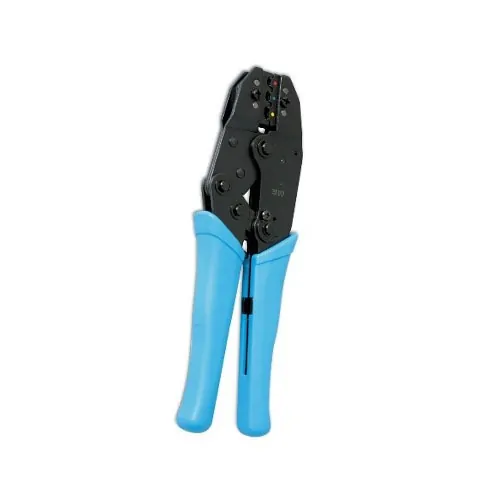 La ponchadora de terminales Hi-tronic modelo 503021 es una herramienta profesional diseñada para el engarzado preciso de terminales eléctricos sin aislar tipo “U” y “O”, comúnmente utilizados en aplicaciones industriales y automotrices. Compatible con cables de cobre de calibre AWG 20 a 10 (1.5 a 6.0 mm²), esta crimpadora garantiza conexiones seguras y duraderas. Su diseño incorpora un sistema de doble nivel en cada muela, permitiendo que ambas pestañas del terminal se engarcen simultáneamente con un solo apretón, optimizando el tiempo de trabajo. El mecanismo de trinquete asegura una presión uniforme y reduce la fatiga del usuario durante tareas repetitivas. Fabricada completamente en acero de alta resistencia y equipada con mangos ergonómicos de material sintético antideslizante, la 503021 ofrece durabilidad y comodidad durante su uso prolongado. Con una longitud de 230 mm y un peso de 0.6 kg, es una herramienta robusta y esencial para profesionales que buscan eficiencia y precisión en la instalación de terminales sin aislar.